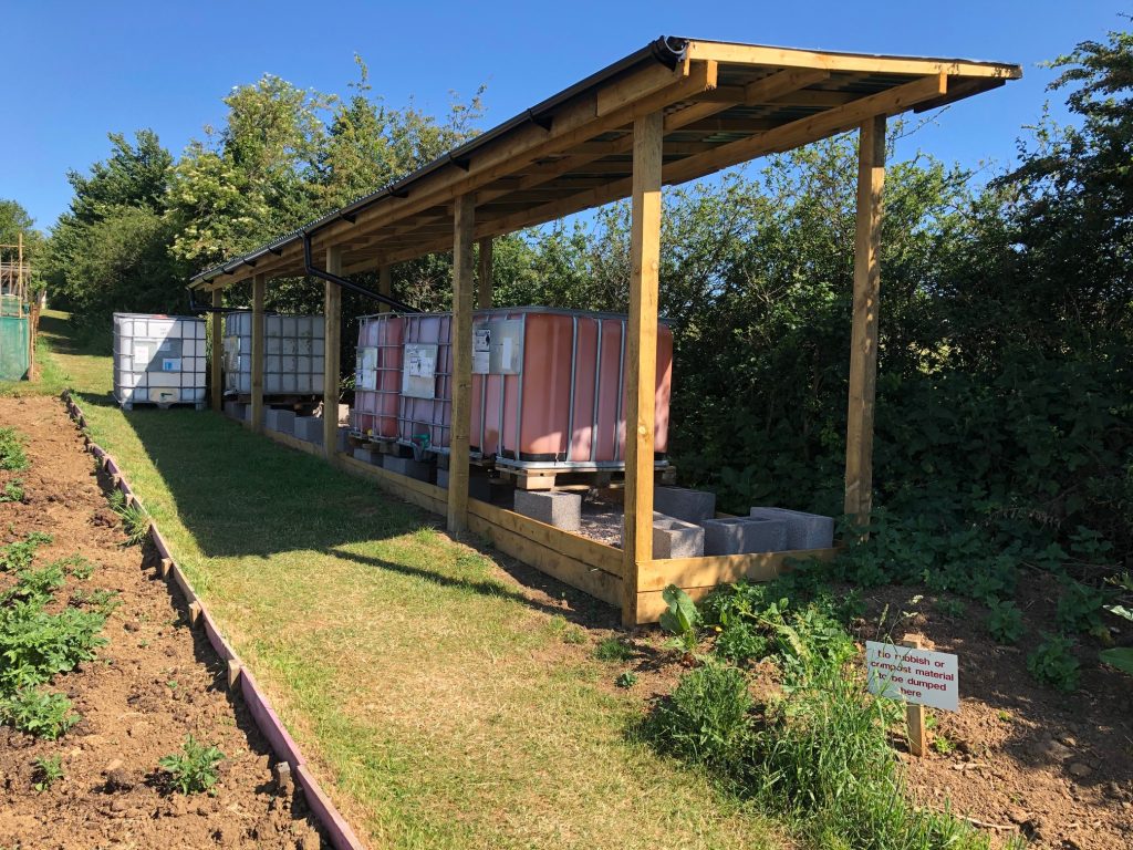 Another water collecting station has been erected. This involved sourcing and overseeing a contractor to do the building work and then the purchase and installation of 1000 litre water containers, all carried out by volunteer plot holders. All we need now is the rain!